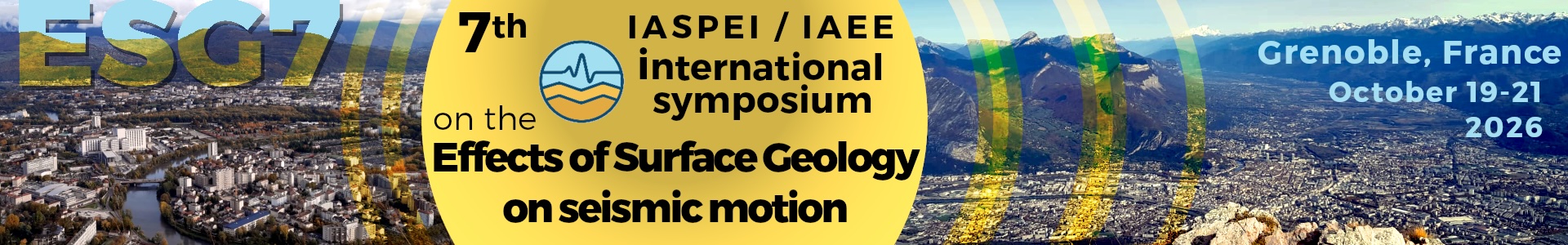 The 7th IASPEI / IAEE International Symposium on the Effects of Surface Geology on Seismic Motion (ESG7) will be held on October 19–21, 2026, in Grenoble, France. The study of ESG is promoted worldwide by the Joint Working Group on the Effects of Surface Geology (JWG-ESG), established in 1985 by the International Association of Seismology and Physics of the Earth's Interior (IASPEI) and the International Association for Earthquake Engineering (IAEE). The first ESG International Symposium was held in 1992 in Odawara, Japan. Since then, symposia have taken place around the world, including ESG2 in 1998 in Yokohama, Japan; ESG3 in 2006 in Grenoble, France; ESG4 in 2011 in Santa Barbara, USA; ESG5 in 2016 in Taipei, Taiwan; and ESG6 in 2021 in Tokyo, Japan, all organized by members of the JWG-ESG.